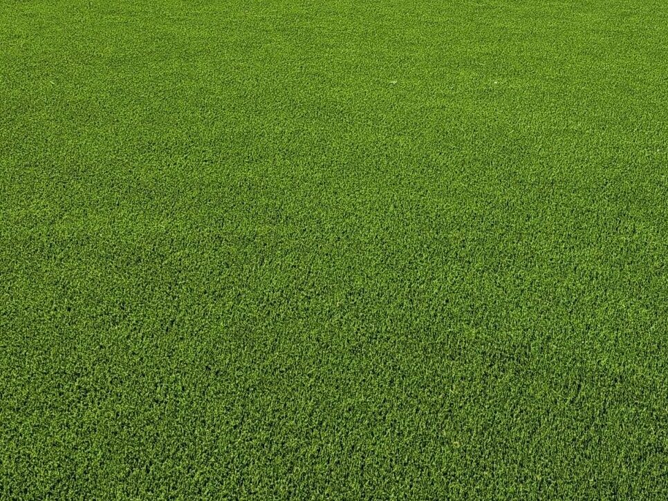 Yes — modern turf with proper seam placement and blade direction closely resembles real grass.